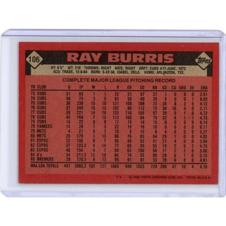 1986 Milwaukee Brewers Ray Burris Topps #106