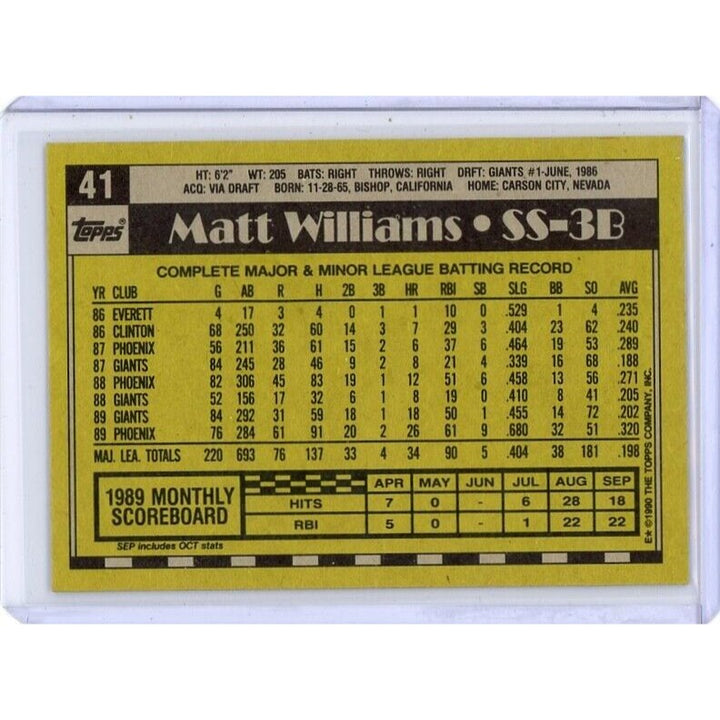 1990 San Francisco Giants Matt Wiliams Topps #41