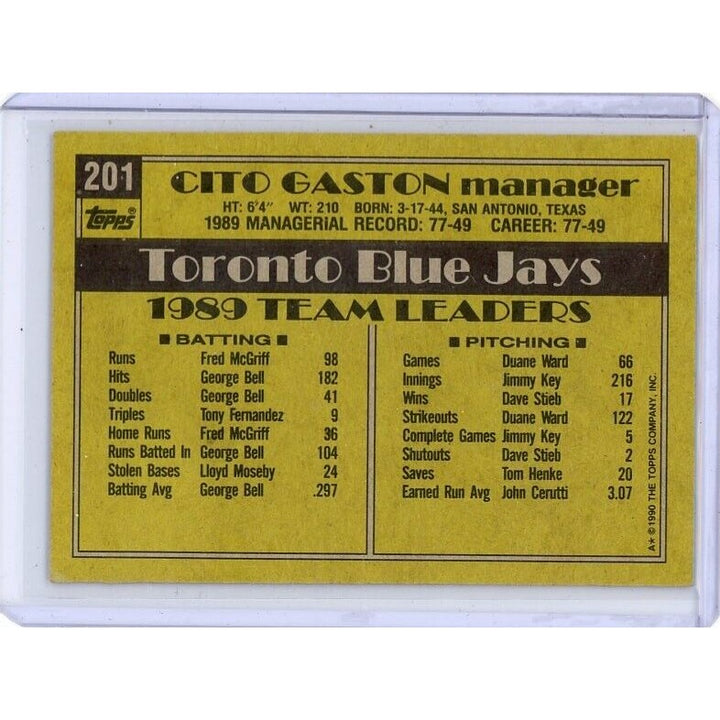 1990 Toronto Blue Jays Cito Gaston Topps #201