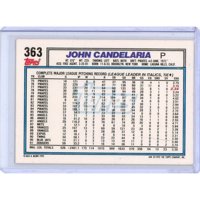 1992 Los Angeles Dodgers John Candelaria Topps #363