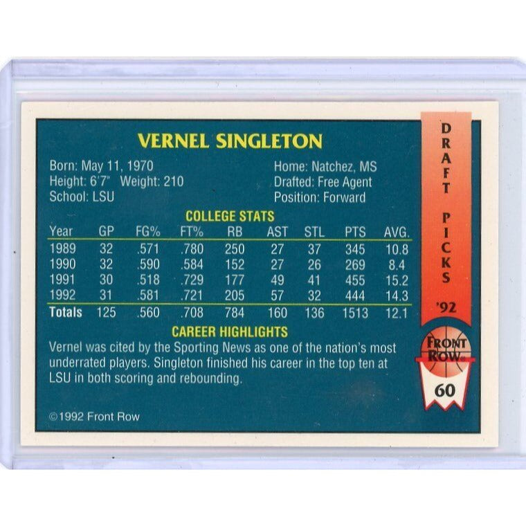 1992 LSU Vernel Singleton Front Row Draft Picks #60