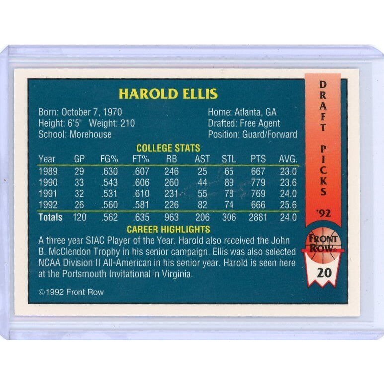 1992 Morehouse Maroon Tigers Harold Ellis Front Row Draft Picks #20