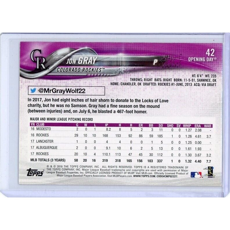 2018 Colorado Rockies Jon Gray Topps Opening Day #42