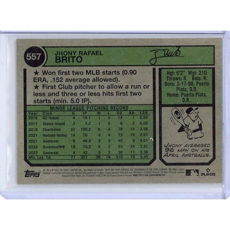 2023 New York Yankees Jhony Brito Topps Heritage #557